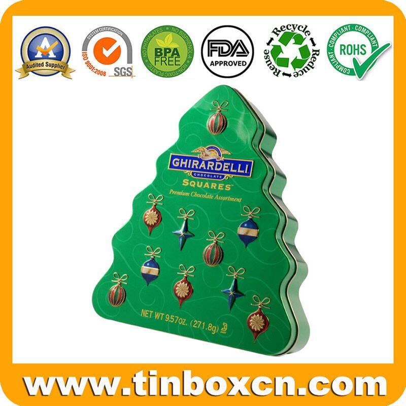Tree-Shaped Christmas Chocolate Tin Box With Eye-catching Embossing