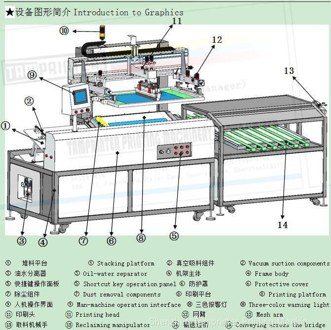is suitable for the automatic high-precision screen printing of reflective film materials and paper, and realizes automatic feeding, automatic printing, and automatic unloading.