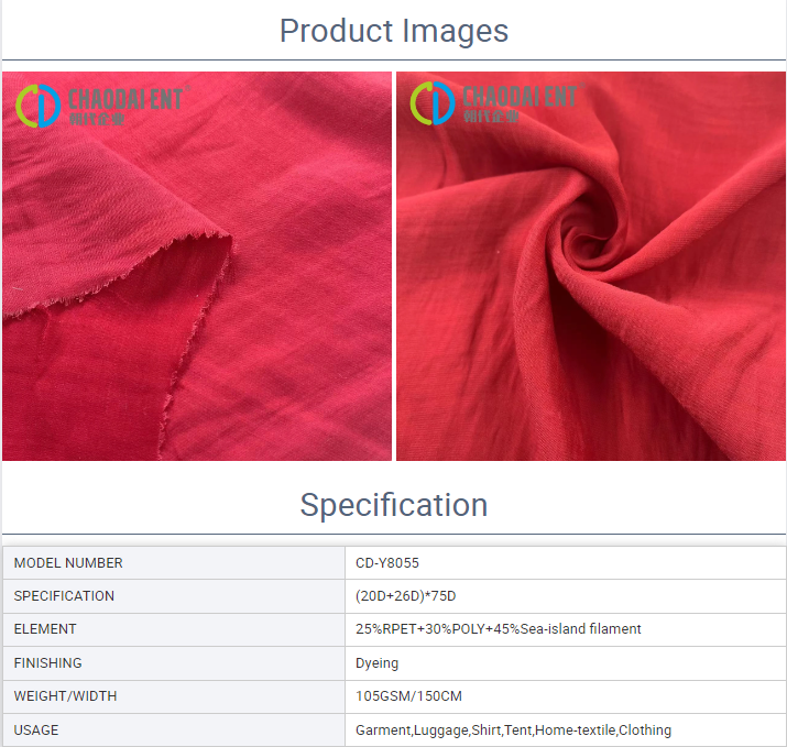 New Design Solid Color Sea Island Filament Woven Recycled Polyester Fabric For Women Dresses