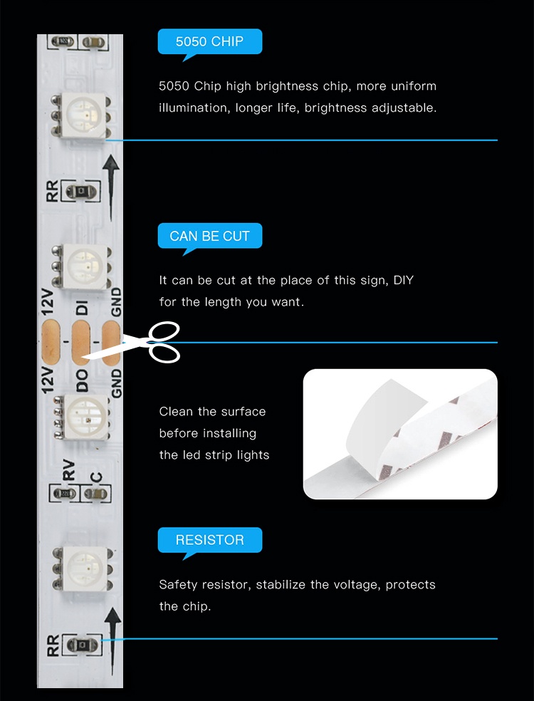 WS2811 Digital Addressable LED Strip 12V Programmable 5050 RGB 5M 60 LED Strip Dream Color White PCB WaterproofUS$ 2.5 - 2.55MOQ: 5 Meters