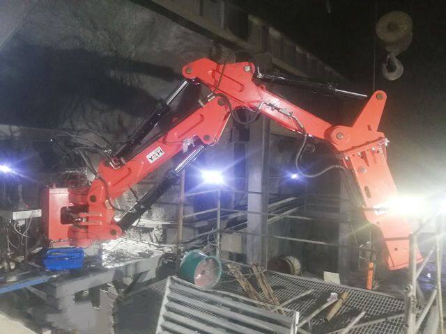 Rockbreaker booms system is a machinery equipment that is applied to eliminate or break blocks in mines, quarries, aggregate plants or cement plants. Rockbreaker booms system consists of pedestal boom, hydraulic hammer breaker, hydraulic pressure station and control system.