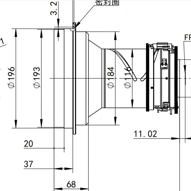 Aperture average transmittance (8-12 μ m) Rear intercept 22.47mm>78% 0.9~1.2 Optical characteristics Horizontal viewing angle (degrees) 25 μ M 17 μ M 12 μ M 8.47 5.77 4.07 320x240 640x512 1024x768 1280x1024 16.85 11.51 8.14--12.98--16.19 Horizontal viewing angle (degree) Wide field of view (18mm) 25 μ M 17 μ M 12 μ M 25.06 17.19 12.18 320x240 640x512 1024x768 1280x1024 47.92 33.63 24.09--37.69--46.21 Working temperature -40 ° C~+70 ° C Storage temperature -50 ° C~+80 ° C Protection level IP68- Only the front end of the lens is coated with DLC film. Environment focusing motor 12VDC (current<0.6a)