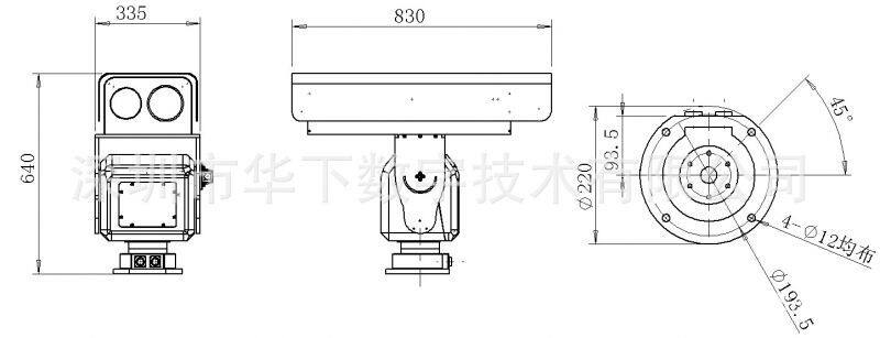 Triaxial Image Stabilization Trispectral PTZ Thermal Imaging Laser Illumination Visible Integrated Night Vision PTZ Camera