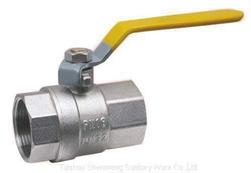 Series SM007A brass ball valves F/F ,screwed BSPP, nickel plated body, Full Bore,Yellow steel Lever ,CE approved,Rated PN32 1/2" to 1",PN25 11/4",PN20 11/2",PN16 2".Temperature -20°C to 110°C