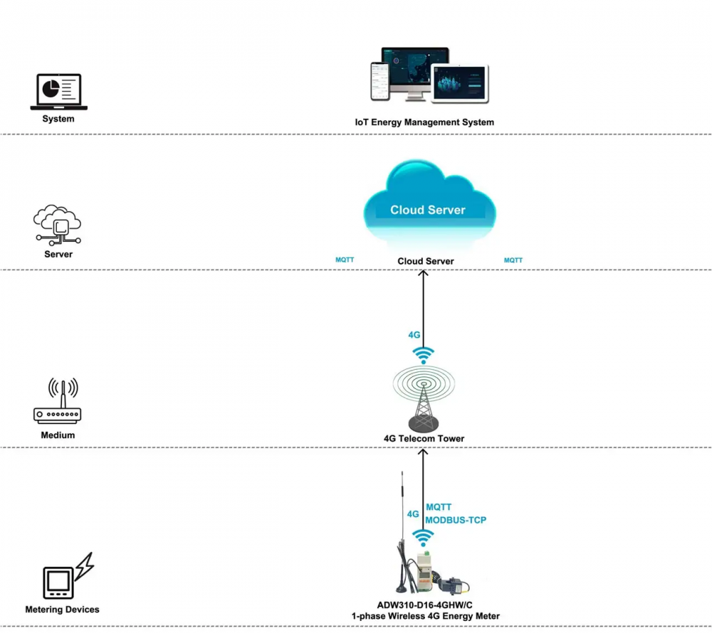 ADW310 wireless energy meter is mainly used to measure the active energy of low-voltage network. It has the advantages of small size, high precision, rich functions, etc., and has many optional communication methods. It can support RS485 communication, Lora, 4G and other wireless communication methods. The current sampling mode of the transformer is convenient for users to install and use in different occasions. It can be flexibly installed in the distribution box to meet the needs of power metering, operation and maintenance supervision or power monitoring for different areas .