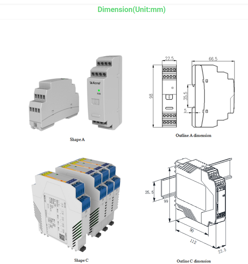 Acrel 2 Independent DC Voltage Signals Are Isolated and Output 2 Independent DC0/1-5V or 0/2-10V Signals.BM200-DV/V-C22NegotiableMOQ: 1 Piece