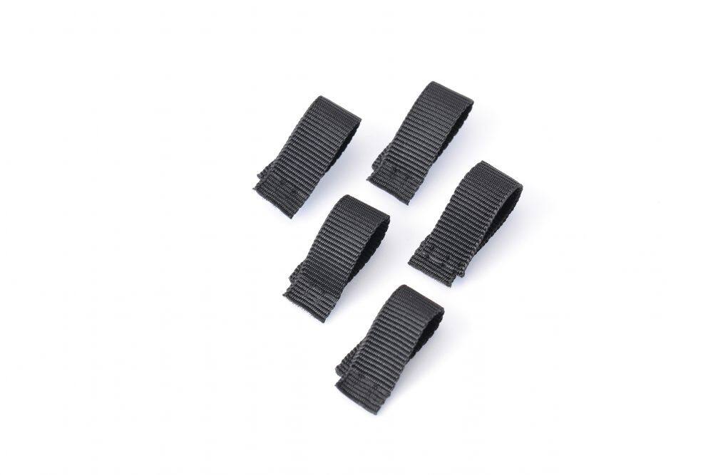Folding loop of webbing for shoe strings at the lateral end of the tongue