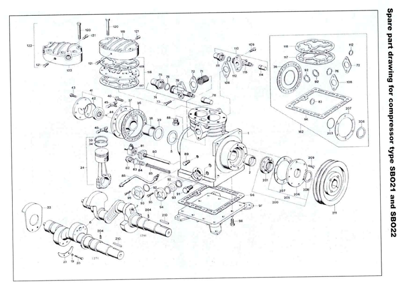 1. Connecting rod with piston complete for SB021 2. Bushing for crankshaft SB021 3.Valve Plate Complete For SB021 4.Set of Gaskets for SB021 5.Bearing Bush SB021