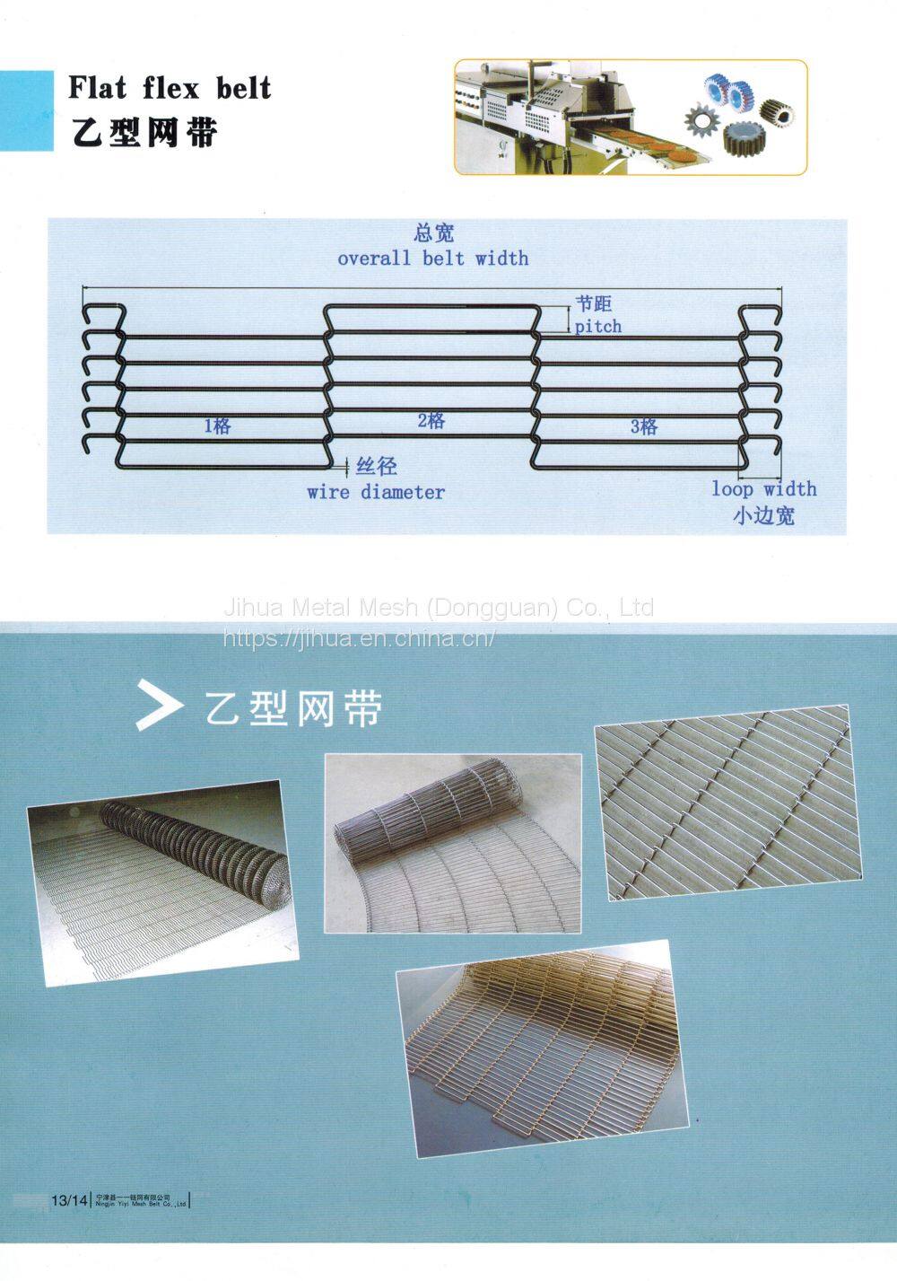 Flat flex conveyor belts are used with a single-layer structure, lighter, the use of sprocket drive. Large open area (opening 70-85%), often used in the lighter weight of the product cooling, frying, baking, drying, heating, decoration, wrapped powder and packaging equipment.