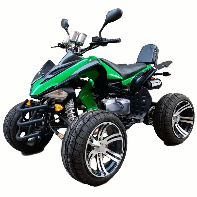 250cc air-cooled, chain drive, with Front tire 25x8-12 and rear tire 25x10-12 +12’ alloy rim, front and rear hydraulic disc brakes, front and rear oil shock absorbers, 530 KMC chain + chain tensioner, LED rear light, single alloy muffler