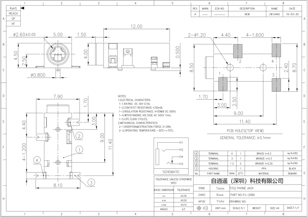 TYPE-C Female Base 6PIN Four Pin Plug-in Board Upper Type (0.2 Material Thickness) Fully Pasted/vertically Inserted/vertically Pasted/sunk Board