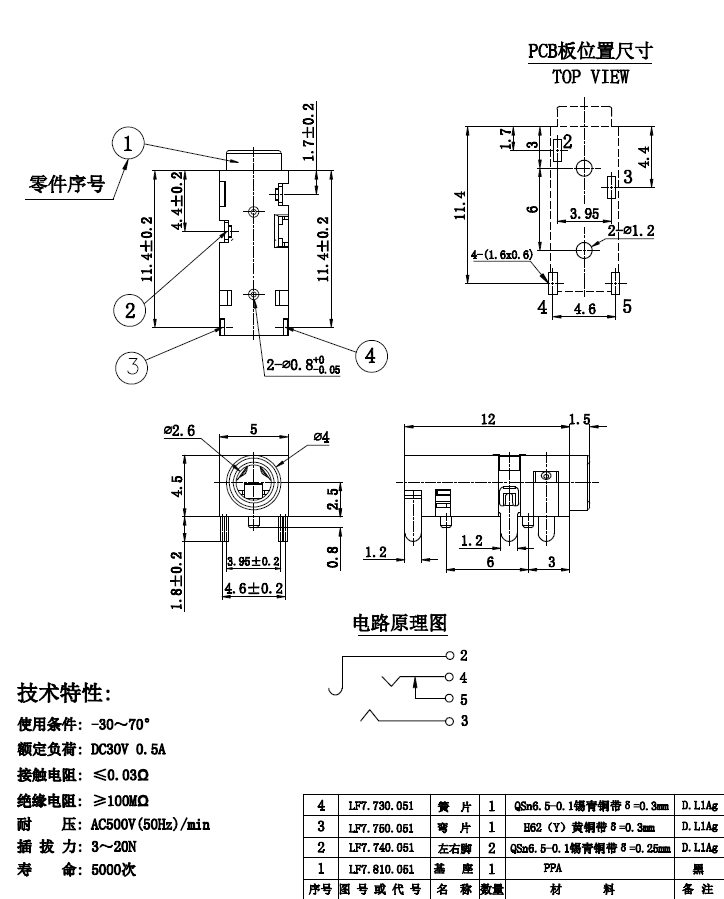 Home > Products > PJ socket > In Stock PJ-208B Earphone Audio Socket 4-pin 2.5 Plug Earphone Socket Plastic Plug