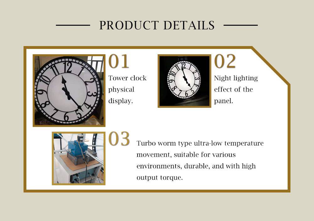 5. Movement: Outdoor tower clock dedicated movement, all copper gears, stepper motor, service life of 100 years;
