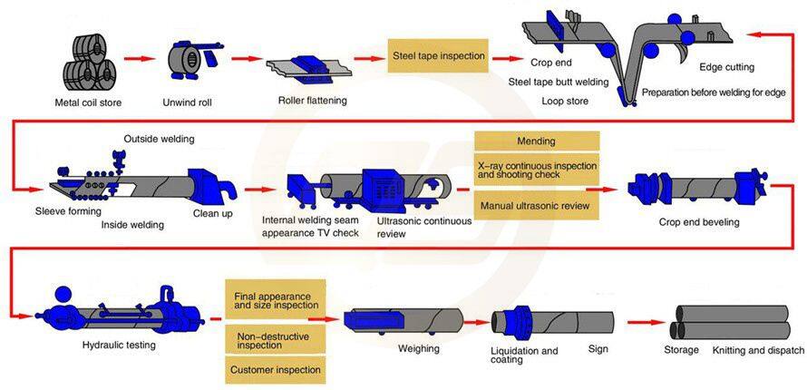 3. The combination of on-line internal burr scraping,flaw detection,on-line weld heat treatment and off-line overall heat treatment can ensure good overall performance of the pipe.