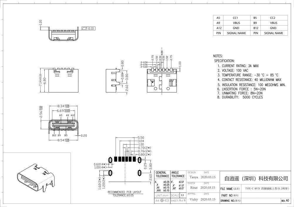 Home > Products > USB /TYPE-C connector > TYPE-C Female Base 6PIN Four Pin Plug-in Board Upper Type (0.2 Material Thickness) Fully Pasted/vertically Inserted/vertically Pasted/sunk Board