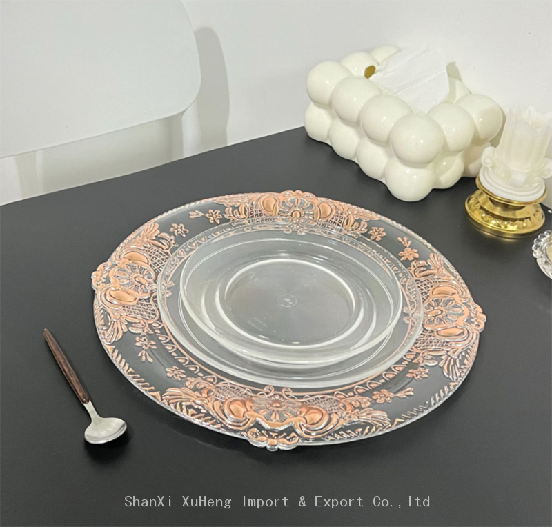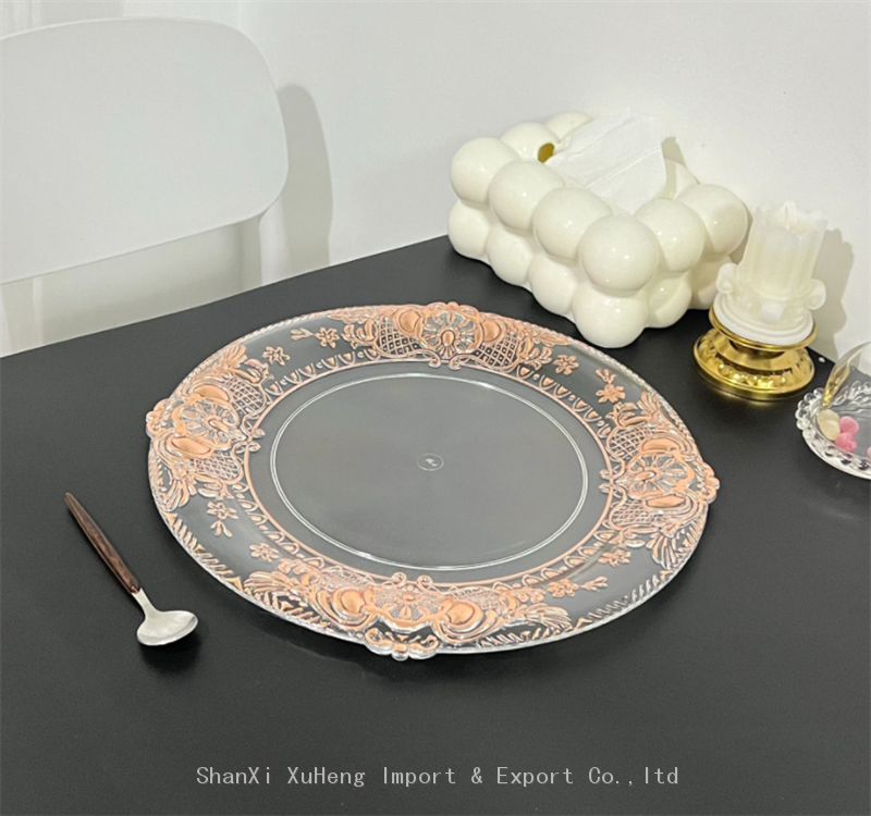 - Wholesale Bulk Clear Plastic Charger Plate With Gold Rim