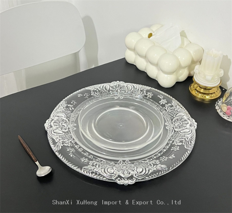 - Wholesale Bulk Clear Plastic Charger Plate With Gold Rim