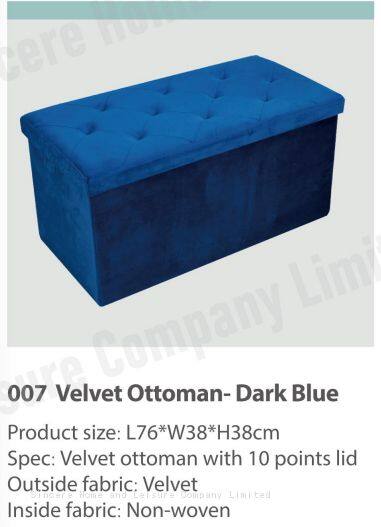 Foldable Storage Pressed Velvet Ottoman-BlueNegotiableMOQ: 1000 Pieces