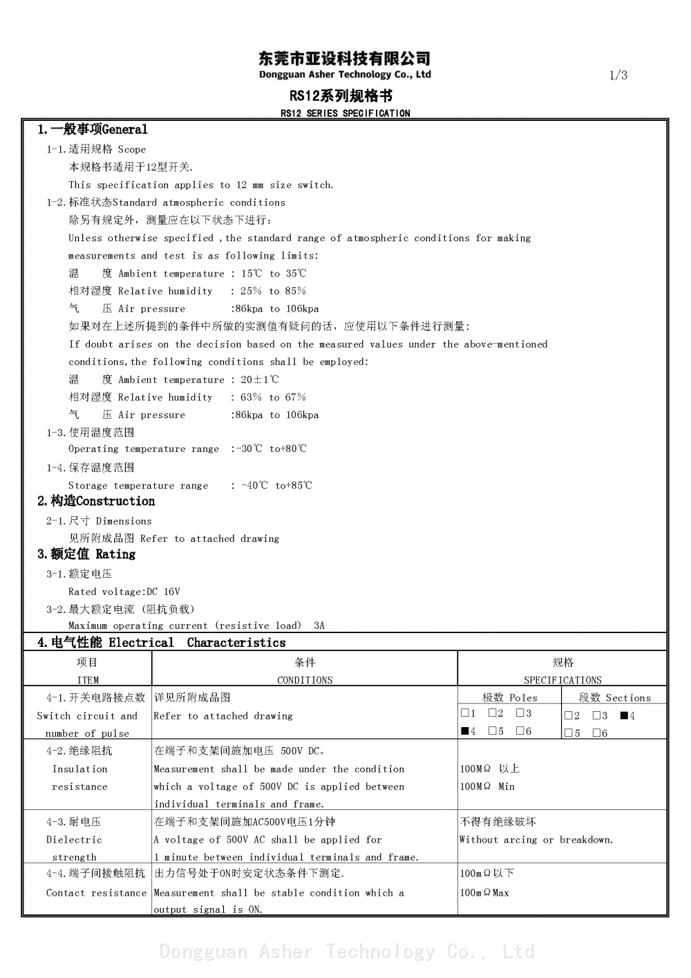 RS126 Double Pole, Double Throw, Self -return Switch,Reset Switch,Left and Right Rotation
