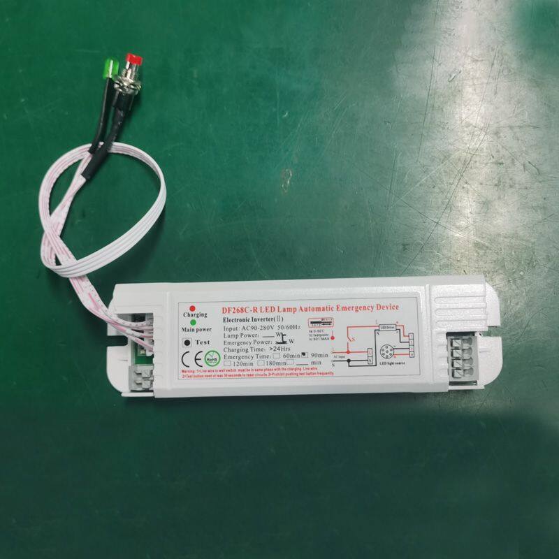 DF268C type lighting emergency power supply, suitable for 40W led lights, can match DALI modulation drive. When there is power, it does not affect the mains lighting. After the power failure, the emergency power can be customized from 3W to 5W, and the emergency time is 1 to 3 hours/customized.