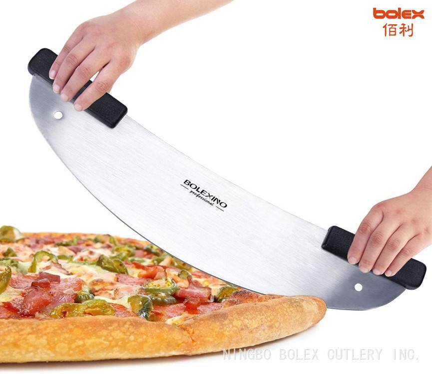 China factory of professional commercial 15" 16" pizza knife,pizza rocker,pizza cutter,stainless steel pizza rocker cutter lines.