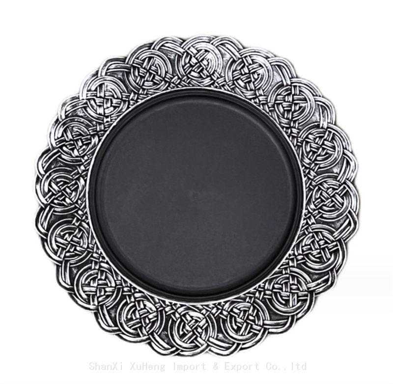 Wholesale Wedding Party Table Decor Antique Silver Colored Round Reusable 13 Inches Plastic Charger Plates