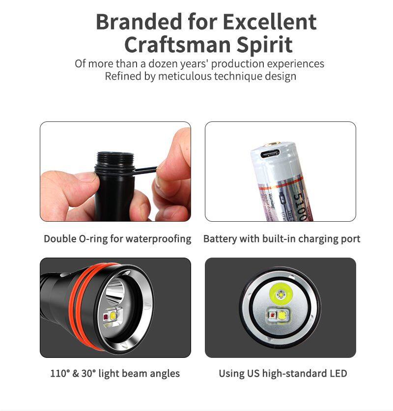 Archon D45 II& WH51 II Diving Flashlight 6000 Lumen Waterproof Diving Torch Rechargeable Scuba Dive Lights Underwater LED Flashlight & Lamp