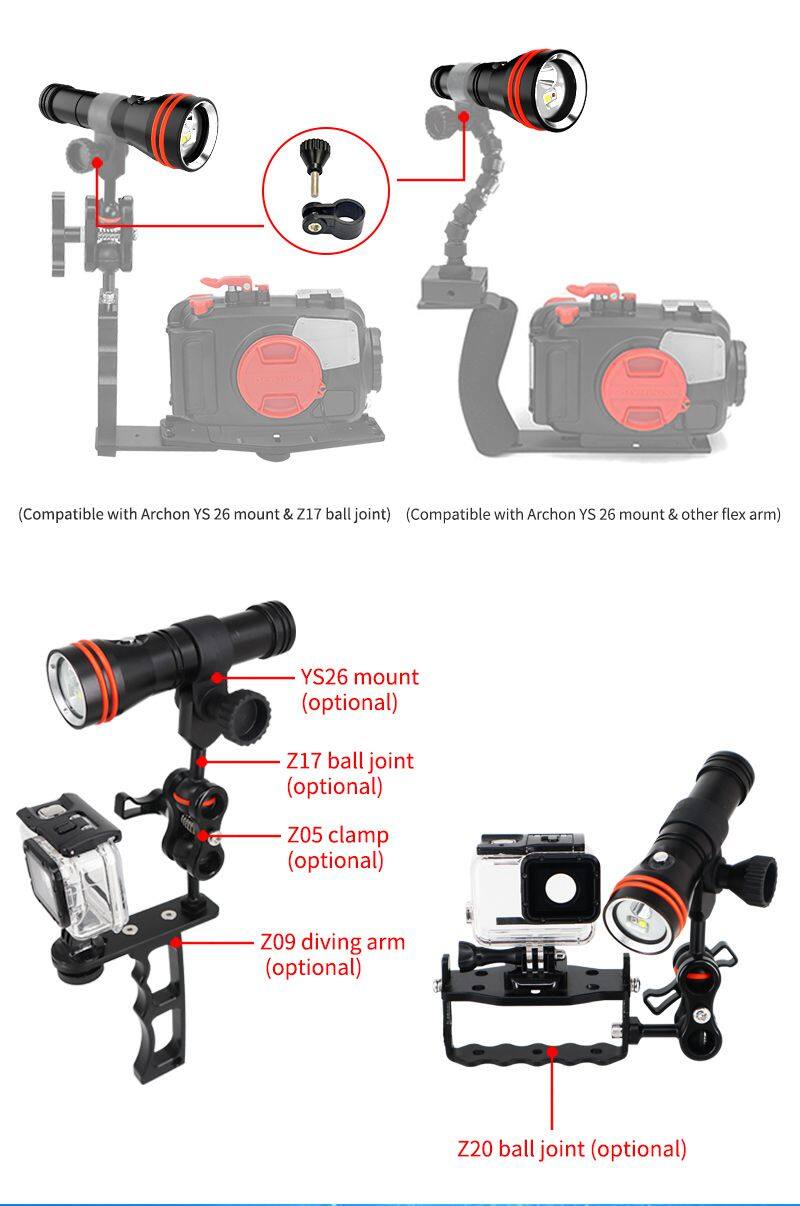 ARCHON D11VII & W17VII Diving Video & Photo Light Scuba Diving Torch LED Flashlight Diving Lamp
