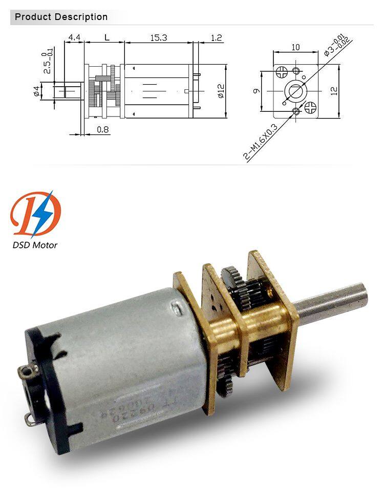 N20 10~1600rpm DC Spur Gear Motor With 12mm Gearbox for Electronic Locks and Home Applications or Electric Toys