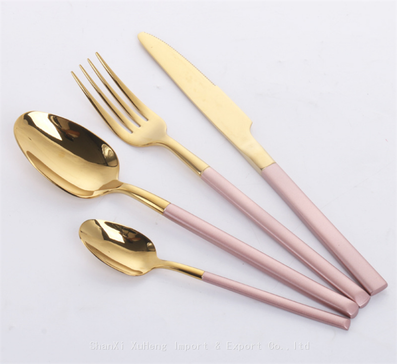 Pink Colored Handle Flatware Sets 304 Stainless Steel Gold Cutlery Set For Wedding