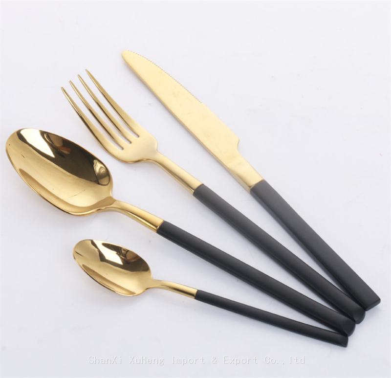 Black Colored Handle Flatware Sets 304 Stainless Steel Gold Cutlery Set For Wedding