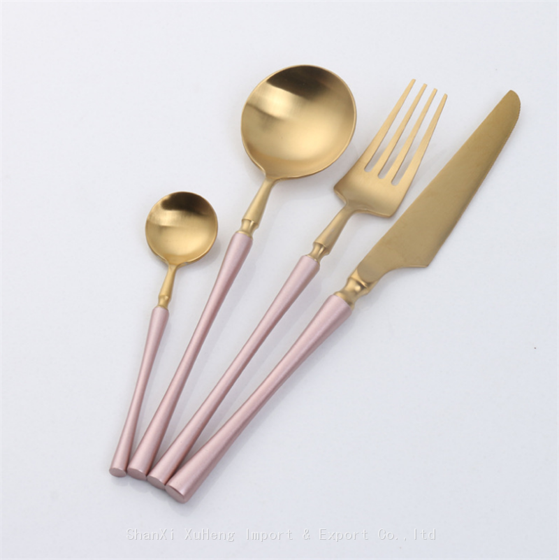 304 Stainless Steel Pink Gold Colored Flatware Knife Fork And Spoon Cutlery Set For Kitchen