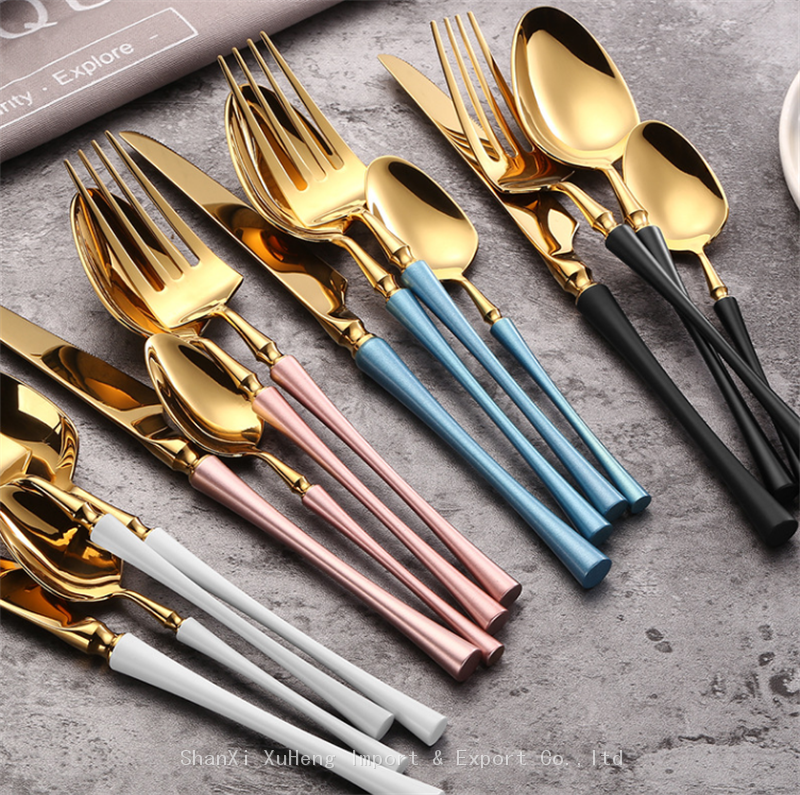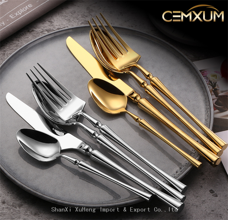 Factory Wholesale Shiny Gold Colored Knife Fork Spoon Cutlery Set For Wedding Table Decoration