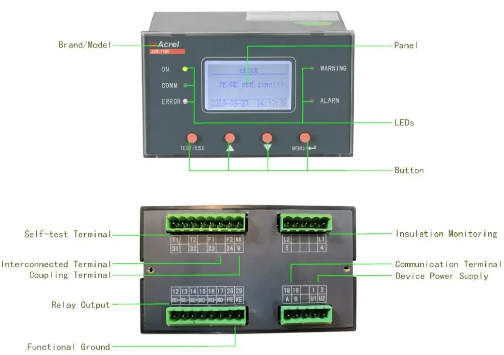 Acrel Ndustrial Isolated Monitoring Device AIM-T500 for Unearthed System AC 690V DC 800V Real-time Measurement of Leakage