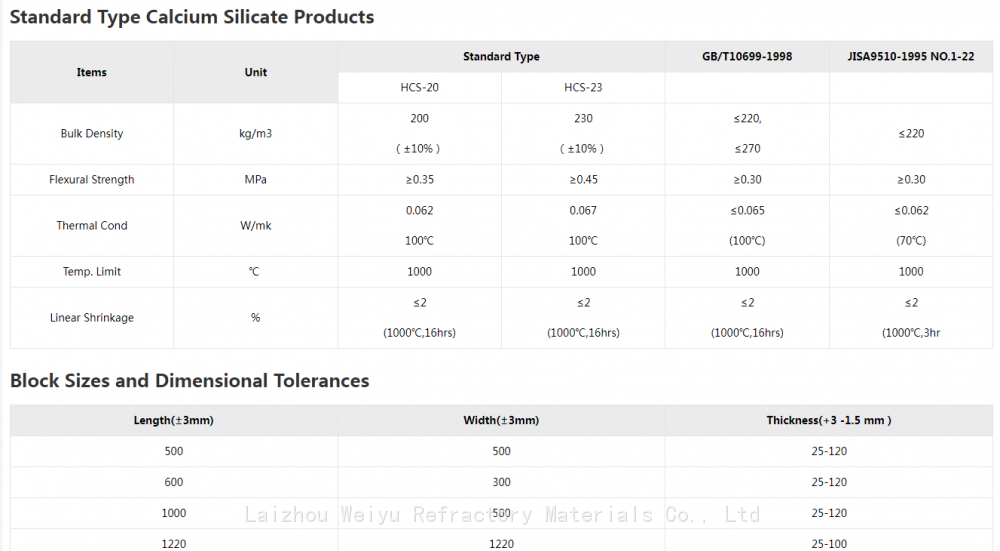 Calcium Silicate Laizhou Refractory Material Calcium Silicate Board