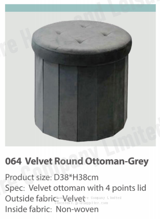 Home > Products > Foldable storage ottoman > Velet Round Ottoman-Grey