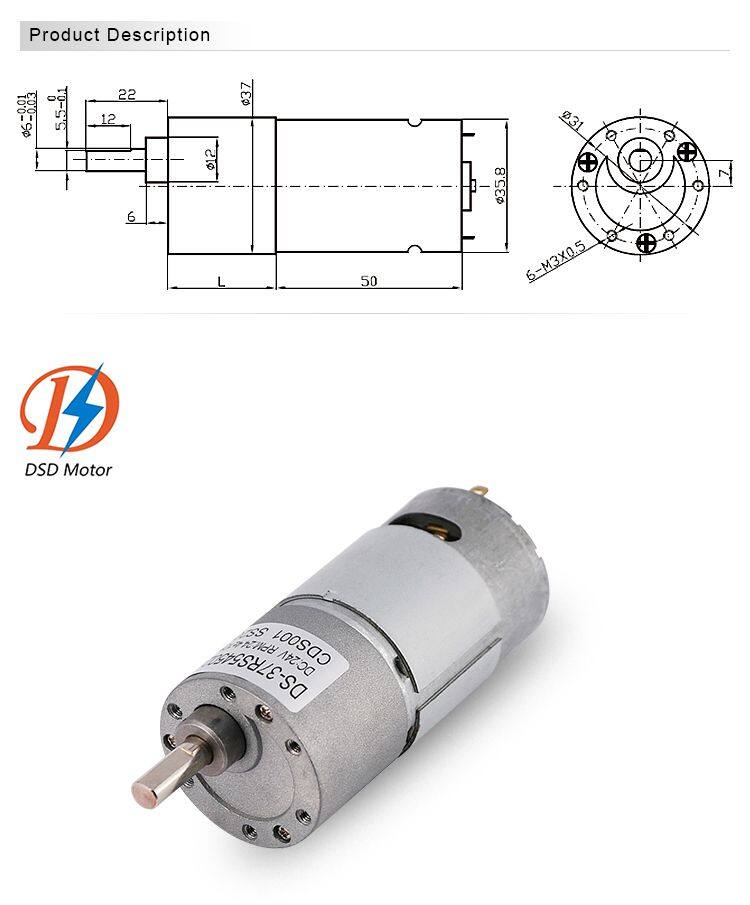 37RS555 High Torque 2Nm Low Rpm 24v 12v dc Gear Motor With 37mm Gearbox 300rpm 100rpm 60RPM for Robot