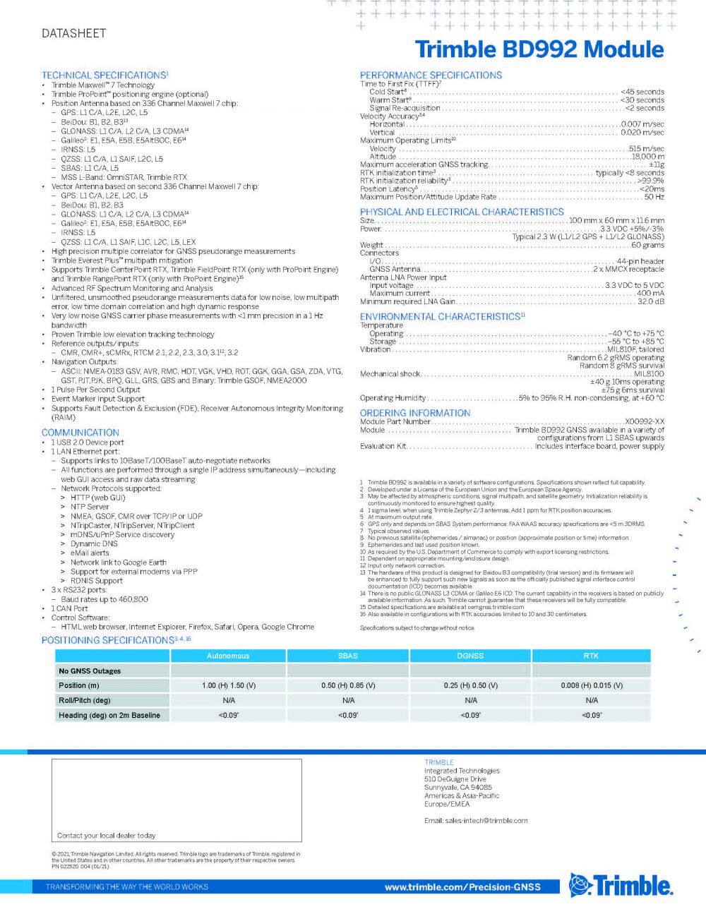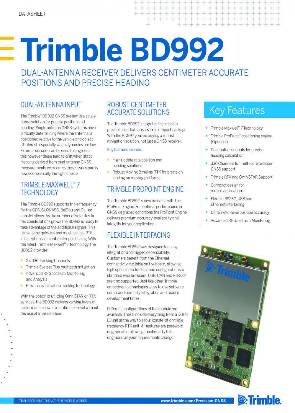 Trimble BD992 Dual-antenna Single Board Solution for Precise Position and Heading