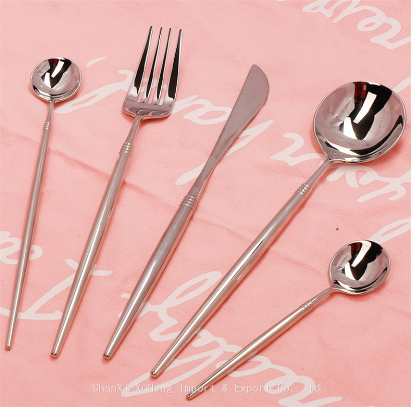 Modern Wedding Flatware Kitchen Knife Spoon Fork Stainless Steel Silver Matte Silverware Cutlery Set