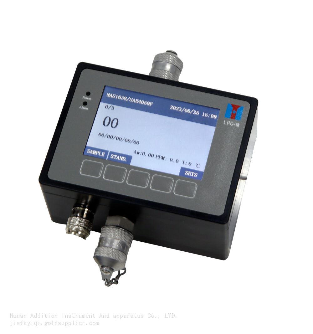 On-line particle counter is the adoption of the International Hydraulic Standard Committee specified photoresist (shading) method counting principle, specifically for on-site online measurement, oil contamination level detection device. It has the advantages of small volume, light weight, fast detection speed, high precision, good repeatability, etc., and can work in high temperature and high pressure and other harsh conditions. Applicable to engine oil, gear oil, transformer oil (i.e., insulating oil), hydraulic oil, lubricating oil, synthetic oil and other fluids, can be widely used in aerospace, petrochemical, transportation ports, iron and steel metallurgy, automobile manufacturing and other fields.
