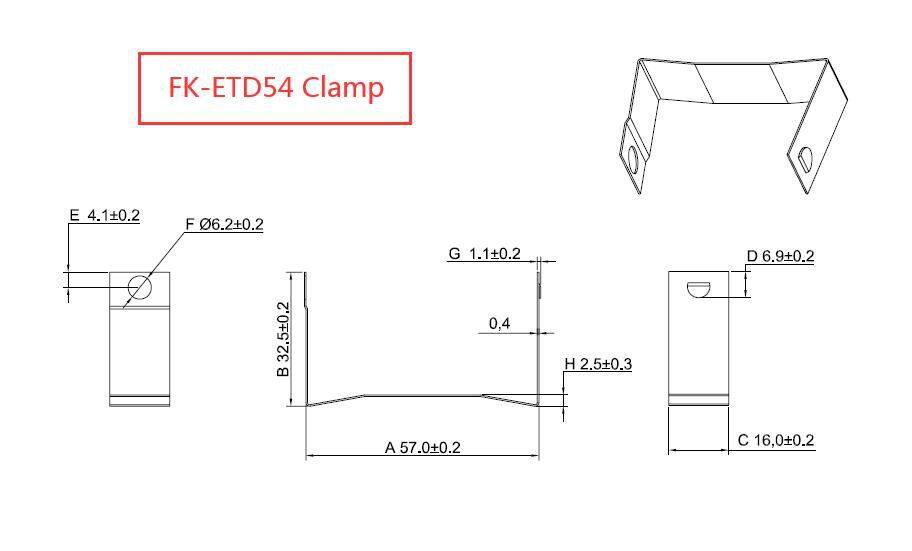 Characteristic: ETD29ETD34ETD39ETD44ETD54 clamp is made of SUS301 stainless steel. The material has the characteristics of elasticity, stability, durability and corrosion resistance. It is suitable for transformer magnetic core clamping. ETD39 interlocking steel clamp has simple assembly, strong clamping force, fixed magnetic core inductance, and core transformer with FK-ETD39 steel clamp has low drying noise. Point, suitable for high-end transformer products and export products.