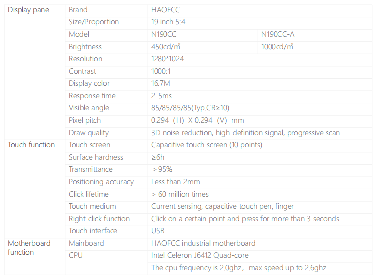 19 Inch External Embedded Anti-jamming Front Panel IP65 Waterproof LAN/COMRS232/485/USB/HDMI Interface Smart Touch All-in-Ones PC