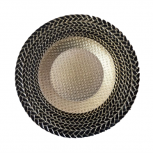 Wholesale Bulk Modern Round Braided Rim Black And Silver Glass Charger Plates Table Elegant Serving Trays