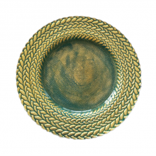 Wholesale Bulk Modern Round Braided Rim Green And Gold Glass Charger Plates Table Elegant Serving Trays