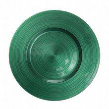 13 Inch Handmade Elegant Green Tableware Golden Glass Charger Plate for Wedding Party Hotel