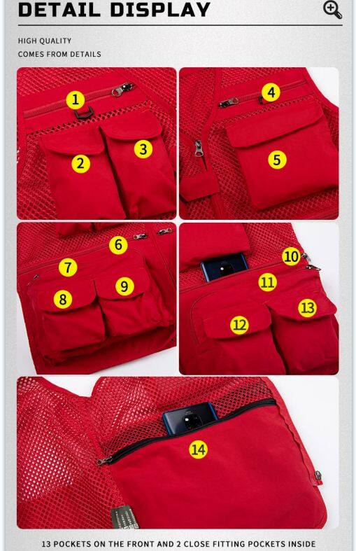 Multi Pocket Safety Vest, Sleeveless, Detachable, Breathable, Durable, Comfortable and Fashionable