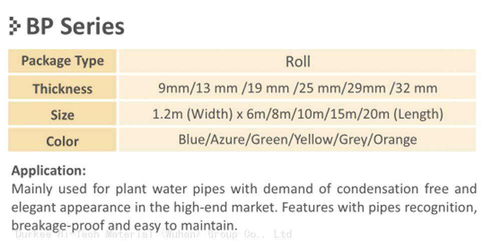 Mainly used for plant water pipes with demand for condensation-free and elegant appearance in the high-end market. Features with pipe recognition,breakage-proof, and easy to maintain.