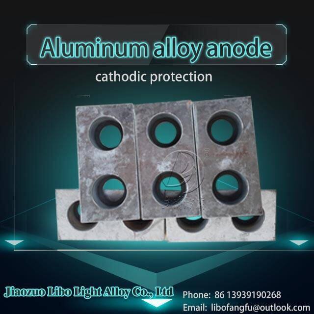 Most metal equipment in seawater or the cathodic protection of the interior floor of a crude oil storage tank cannot be used in a soil environment with low chloride content. The electrode potential of the aluminum sacrificial anode is -1.05 volts, and the capacitance of the aluminum sacrificial anode decreases with the increase of temperature when the ambient temperature is higher than 49 degrees Celsius, which can be referred to the formula: Z=2500-27 (T-20), the working temperature of the T anode, unit ° C. In saltwater environments, the current capacity of aluminum sacrificial anodes may be reduced by half. Aluminum sacrificial anodes can be fixed directly to the structure of the equipment to be protected without the need for other substances as fillers