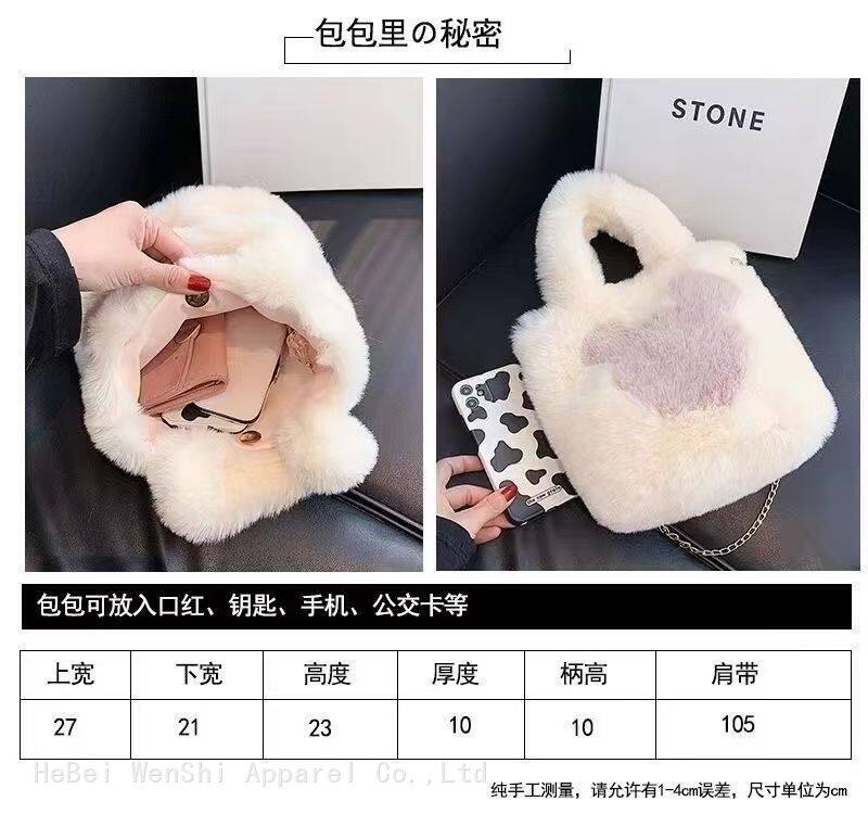 011 2023 New Plush Handbag Autumn and Winter Fashion Girl Artificial Fur Shoulder Oblique Span BagUS$ 2.39 - 3.57MOQ: 30 Bags