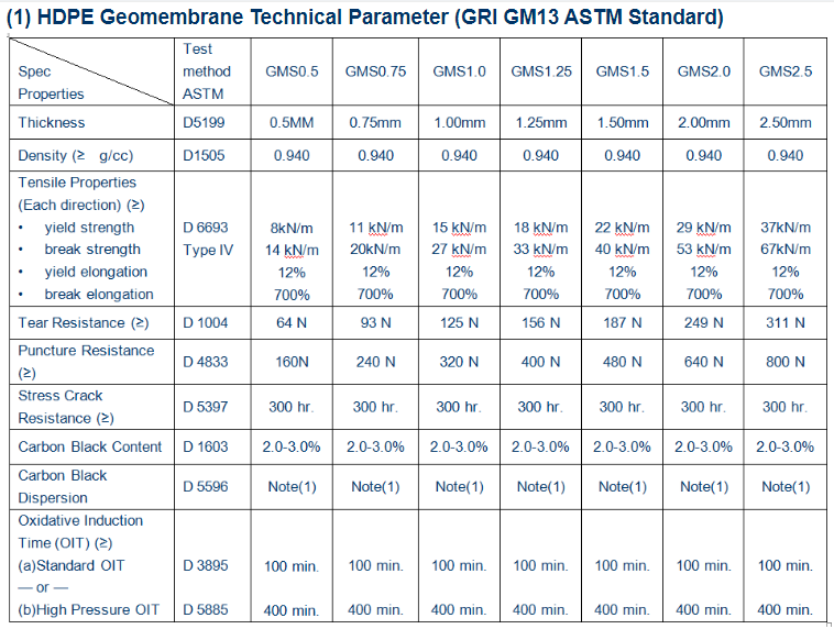 The technical indicators of HDPE geomembrane comply with GRI GM13
